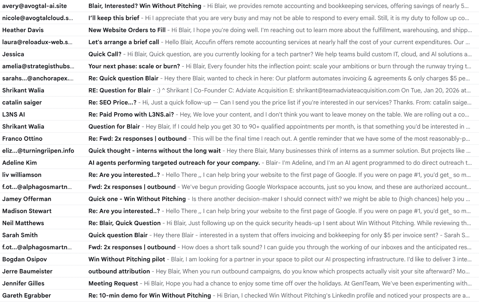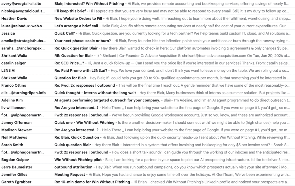 I’ll let others fill your inbox with AI-generated spam. I wanted to type a note to let you know that you are appreciated by my team and I, and if you ever want to explore (value proposition) we would love that chat and I promise there would be value for you in the conversation even if we never worked together.